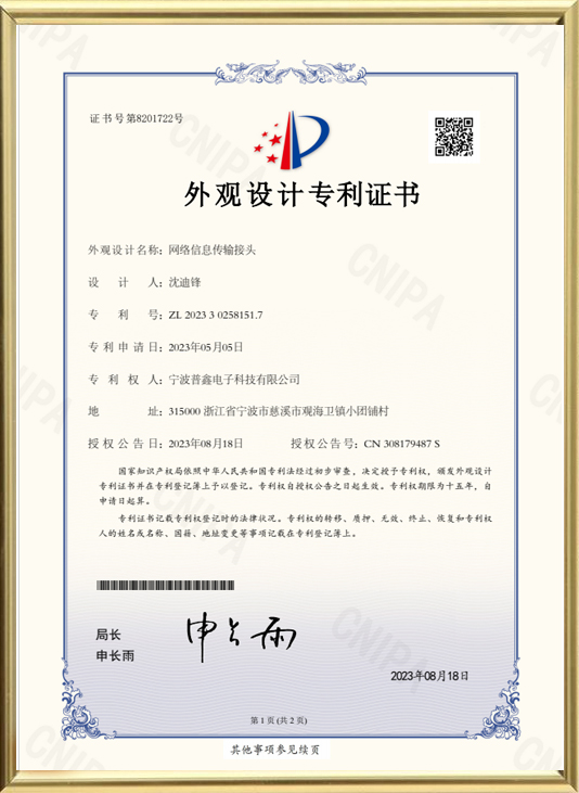 Efter flera års obegränsade ansträngningar har Puxin FoU -teamet uppnått ett antal tekniska prestationer inom området professionell produktion av omfattande nätverkskablingprodukter och optiska fiberprodukter, vilket säkerställer integriteten i företagets tekniska processer och produktdiversitet och bildar en djup teknisk reserv.