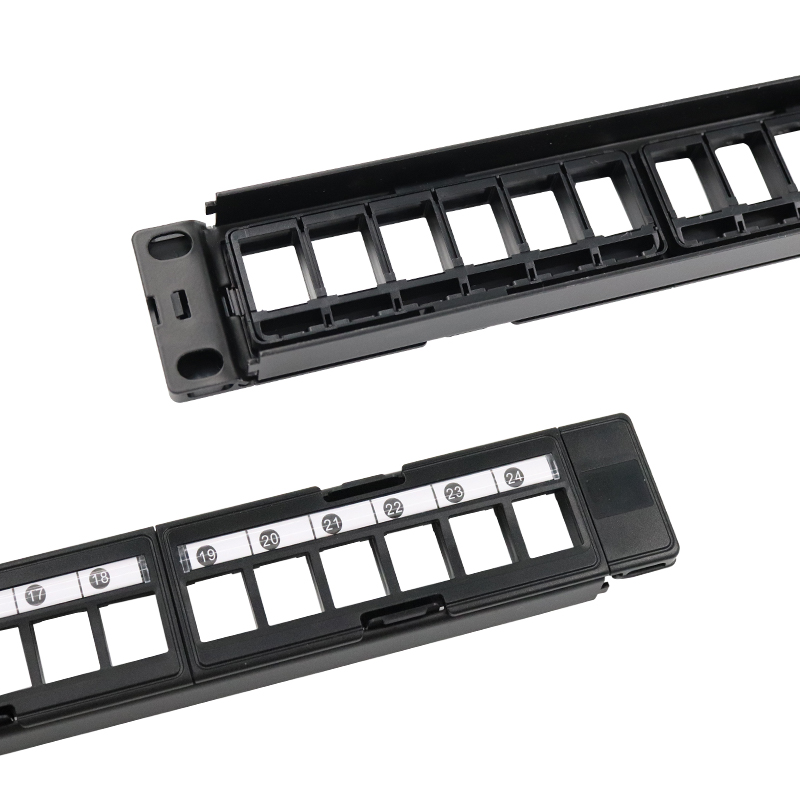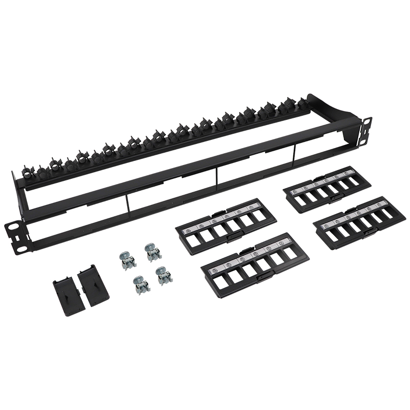| P-24b-2 | 19 "1U 24 Port UTP Blank Patch Panel med Back Shelf |